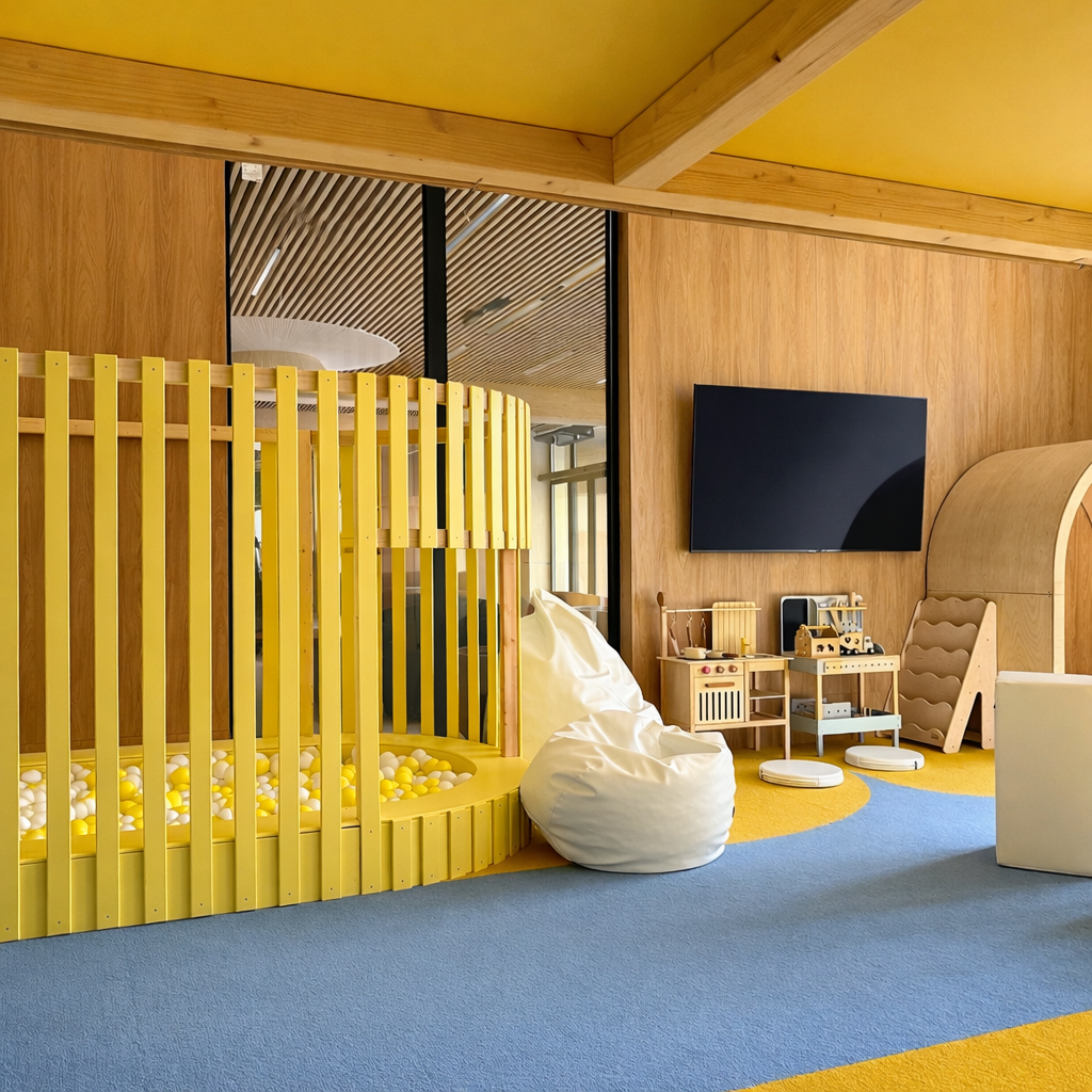 Sala zabaw została zaprojektowana z myślą o najmłodszych – to bezpieczna, estetyczna przestrzeń, w której dzieci mogą aktywnie spędzać czas niezależnie od pogody. To ogromna wartość zarówno dla rodzin, jak i dla właścicieli apartamentów przeznaczonych na wynajem.