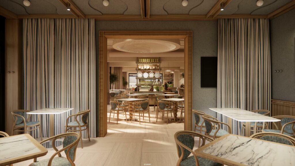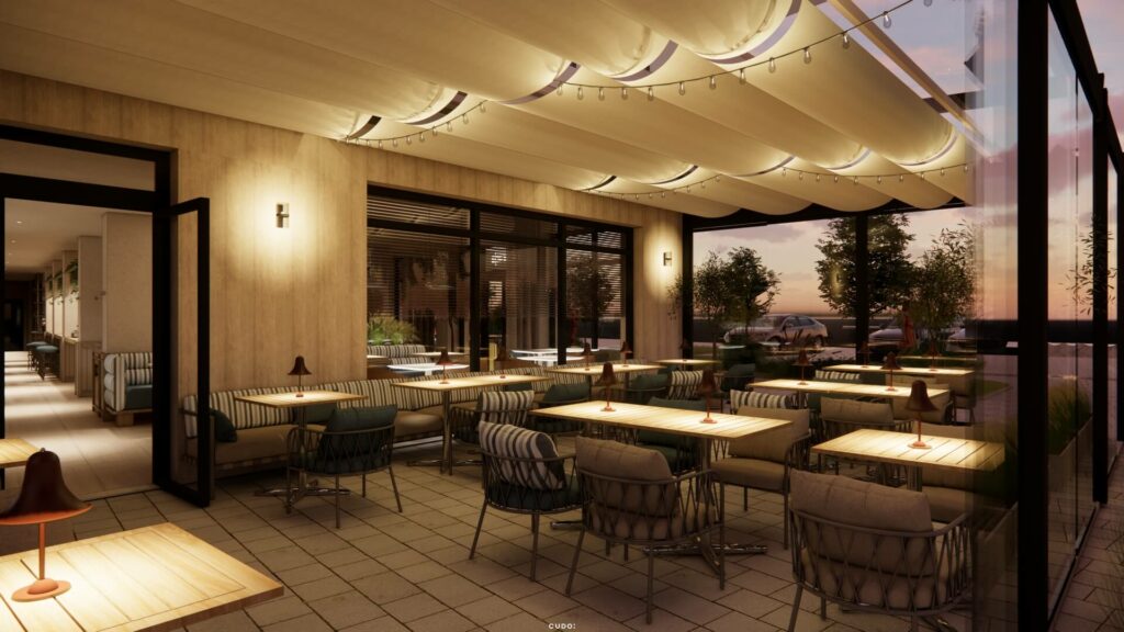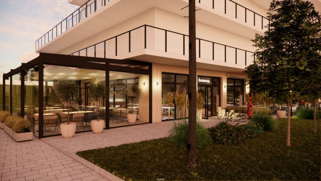 • restauracja – idealna zarówno dla właścicieli, jak i gości, zwiększająca komfort pobytu bez konieczności opuszczania inwestycji,